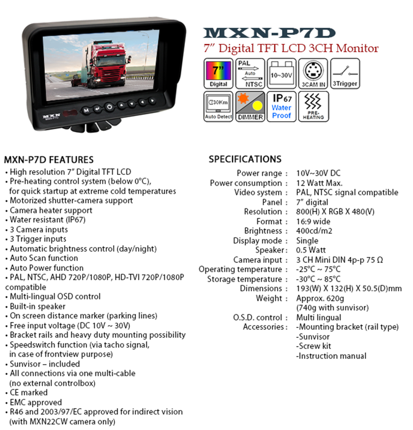 • High Resolution 7″ Digital TFT LCD