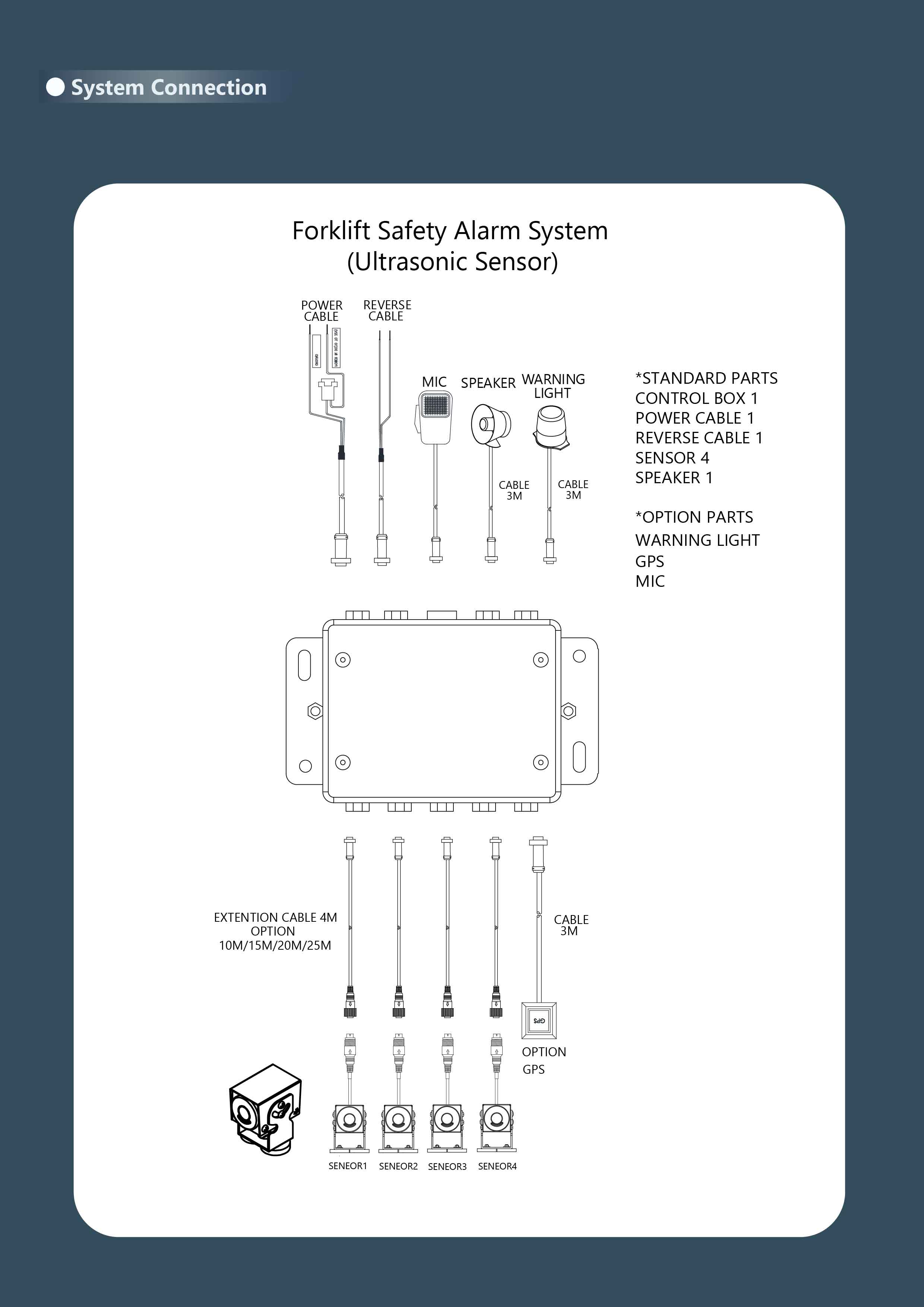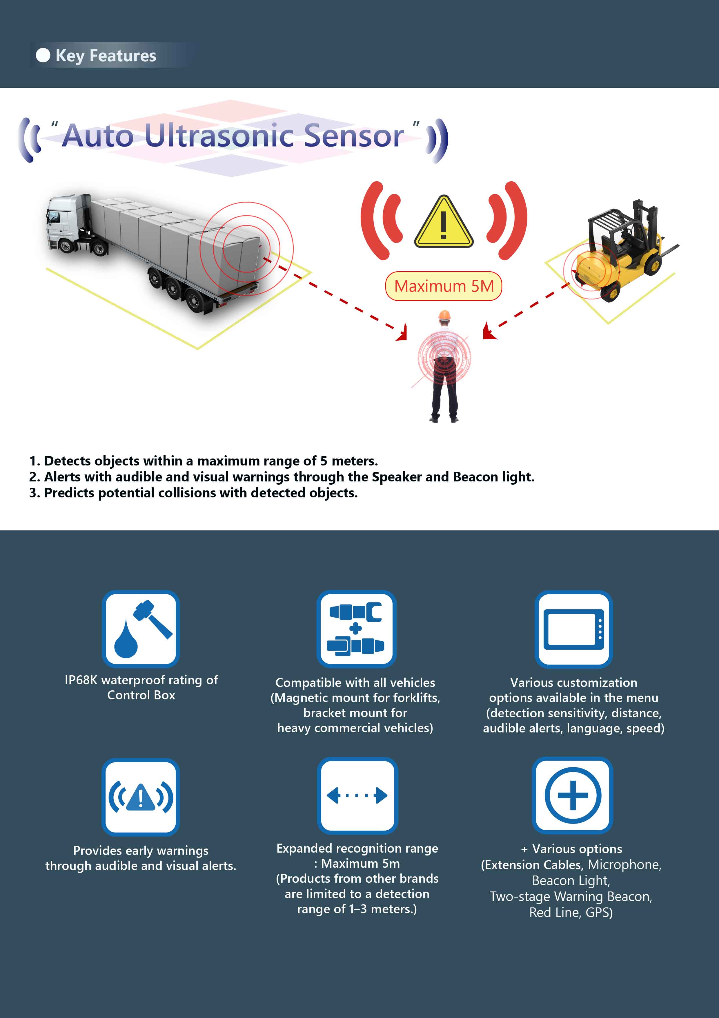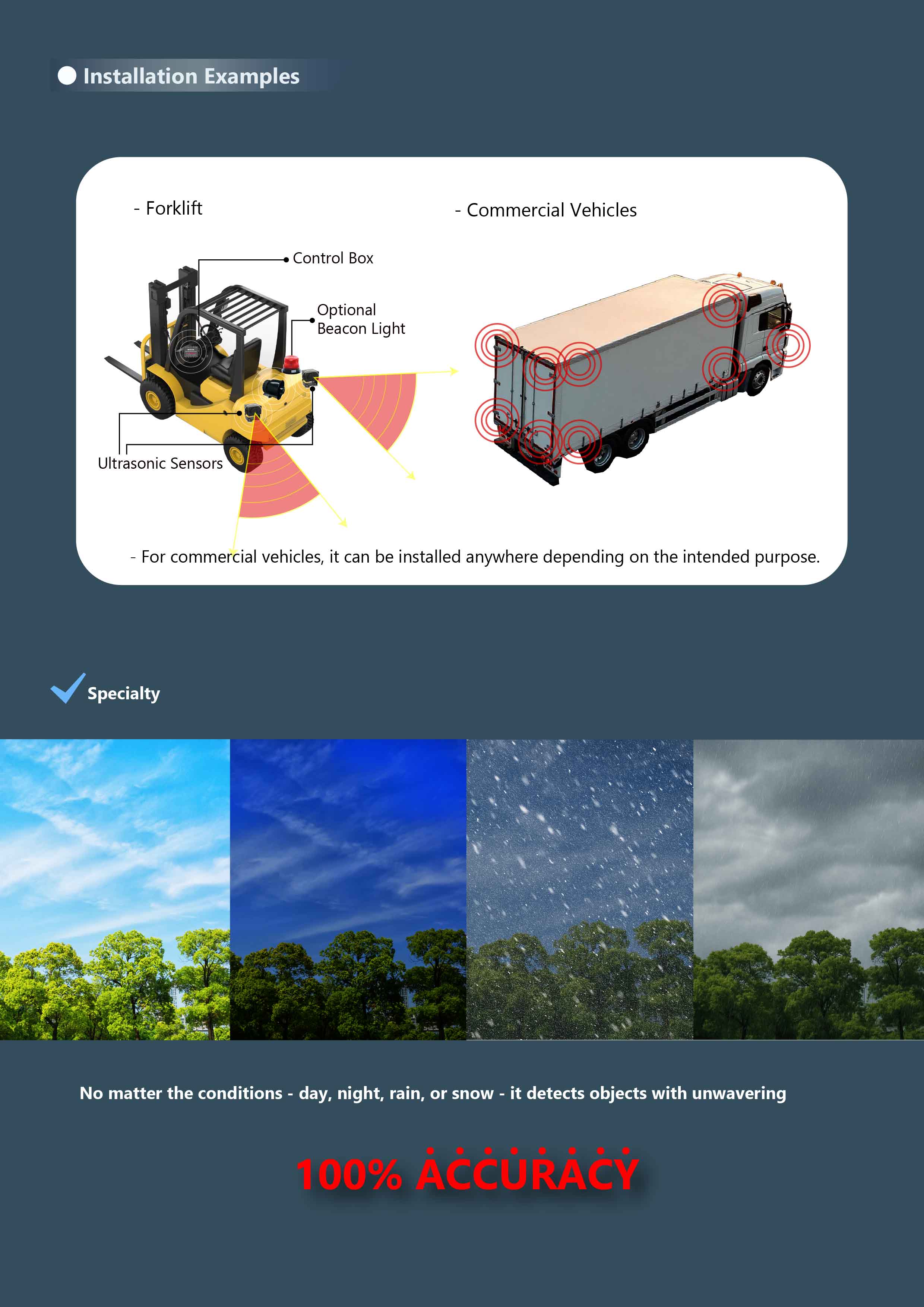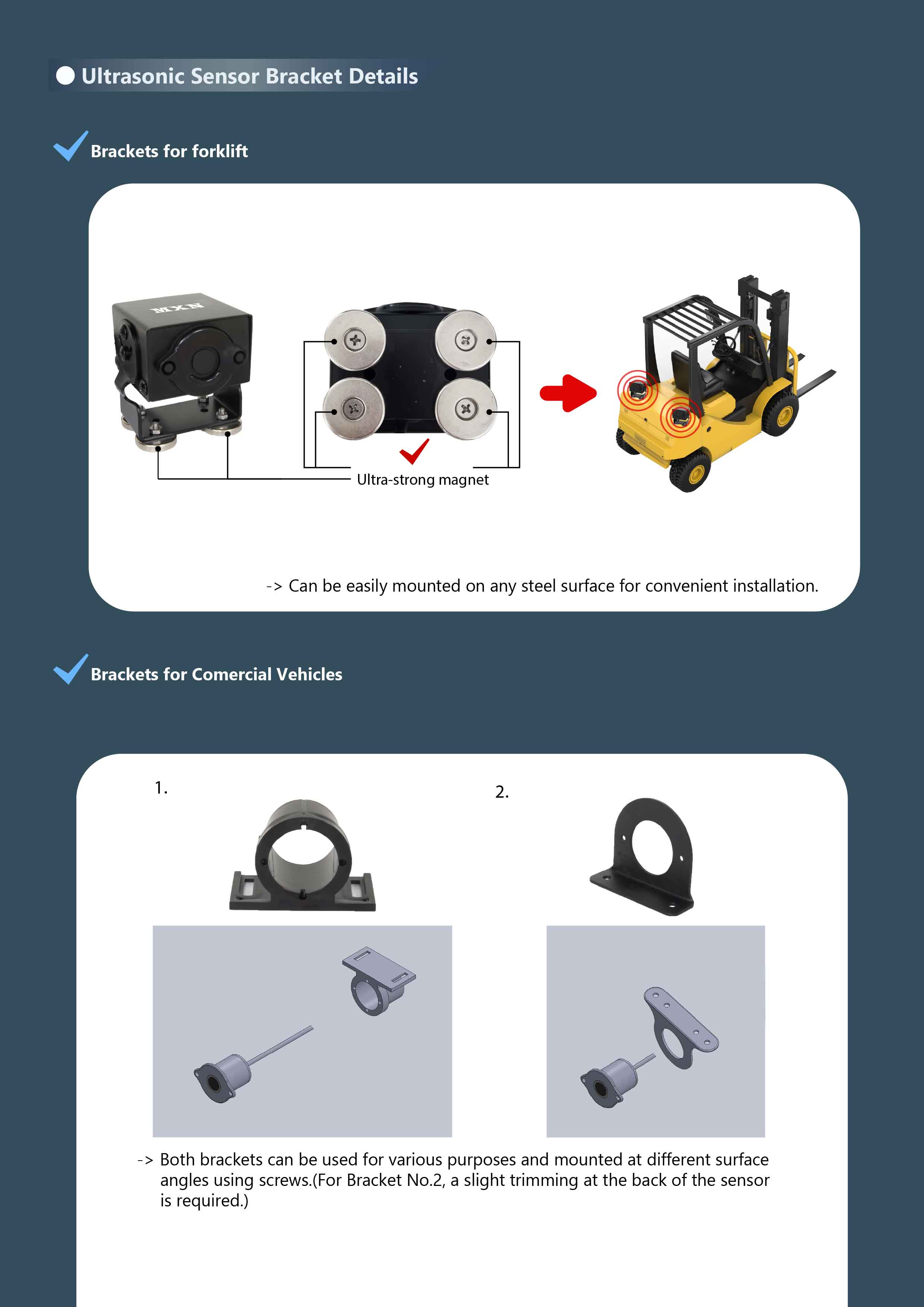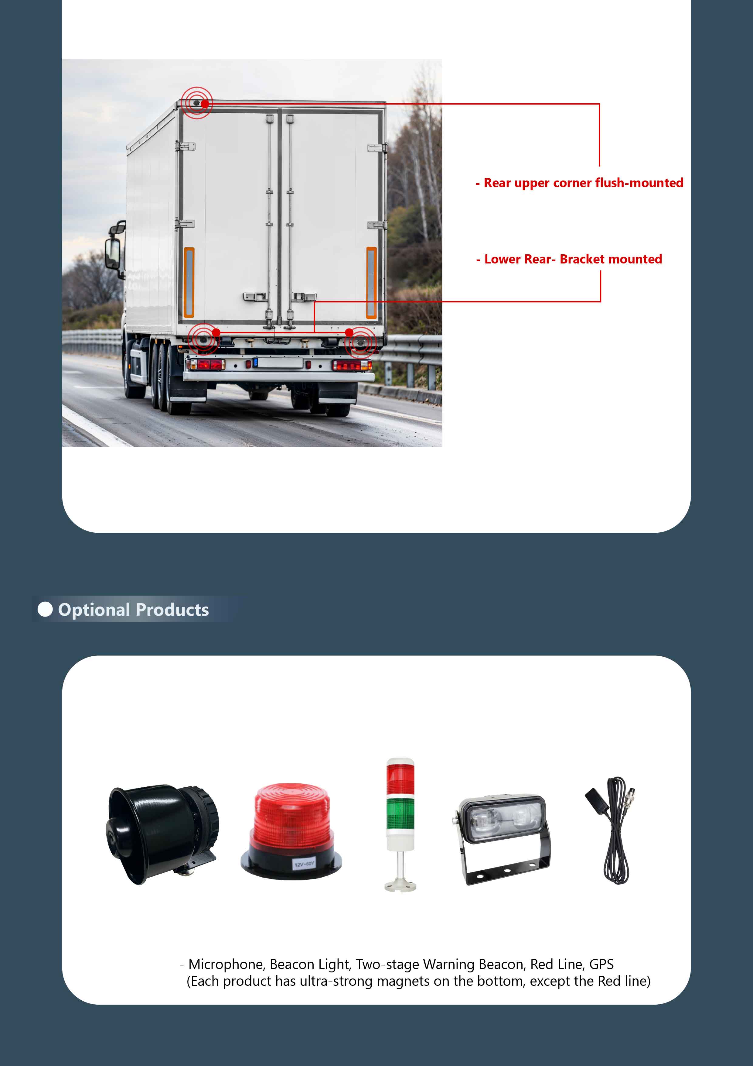 • Compatible with all vehicles (Magnetic mount for forklifts, bracket mount for heavy commercial vehicles)