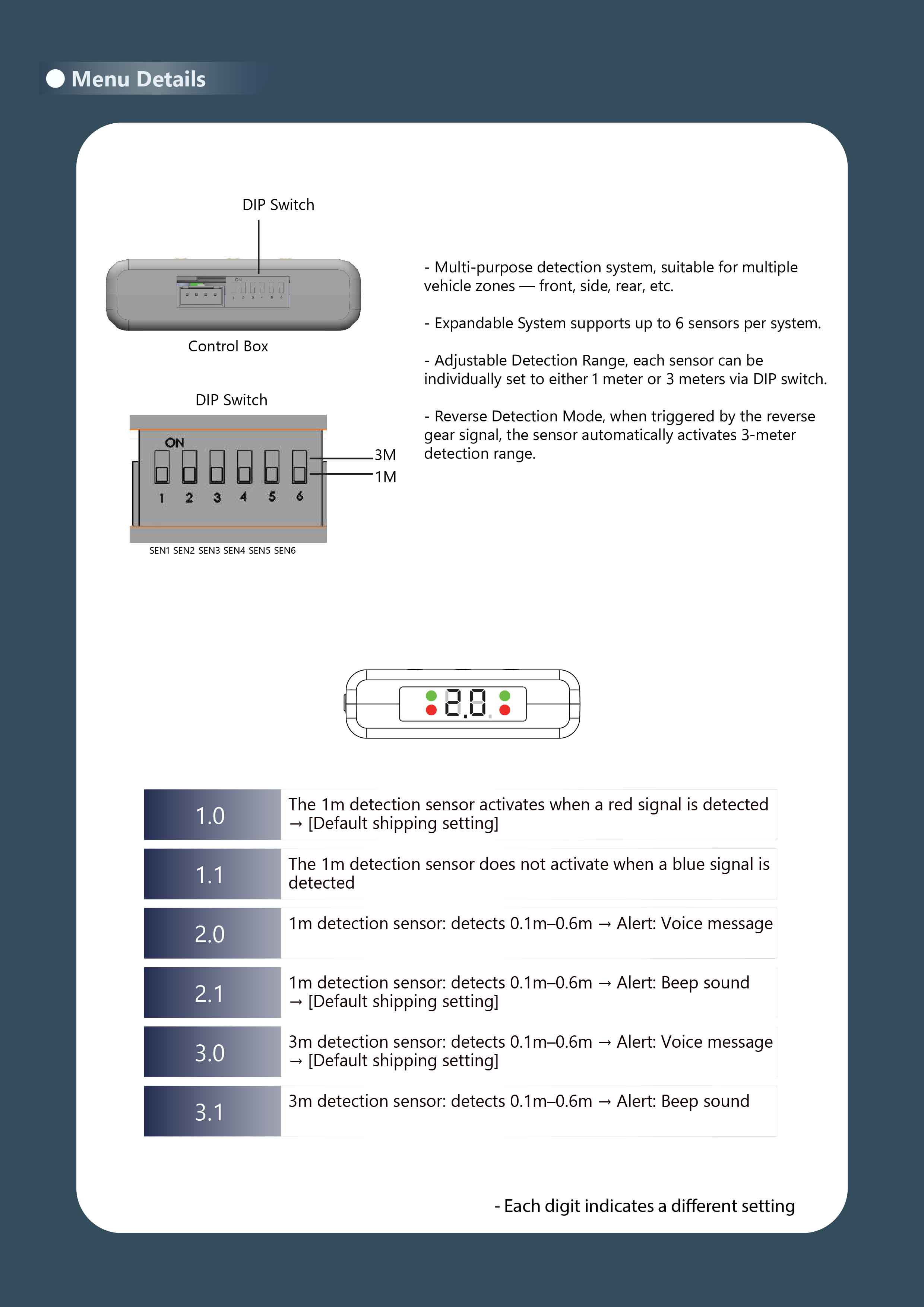 • Various customization options available in the menu (distance, audible alerts)